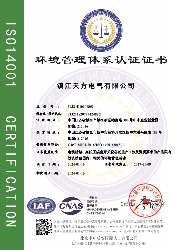 環(huán)境管理體系認(rèn)證證書(shū)(英