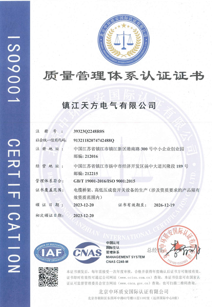 質(zhì)量管理體系認(rèn)證證書(shū)
